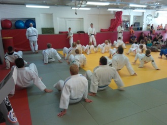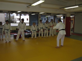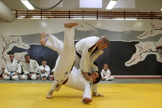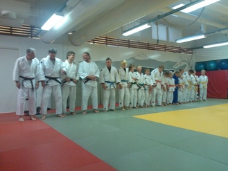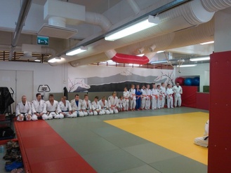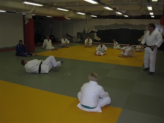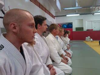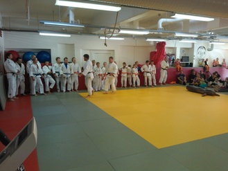![]() Hannu ja Lassi Immonen näyttävät kurssilaisille kataa Judon perusteet -koulutuksessa. | ![]() Judon perusteet -koulutus Kajaanin Judokerhon dojolla 9.-10.11.2013 |